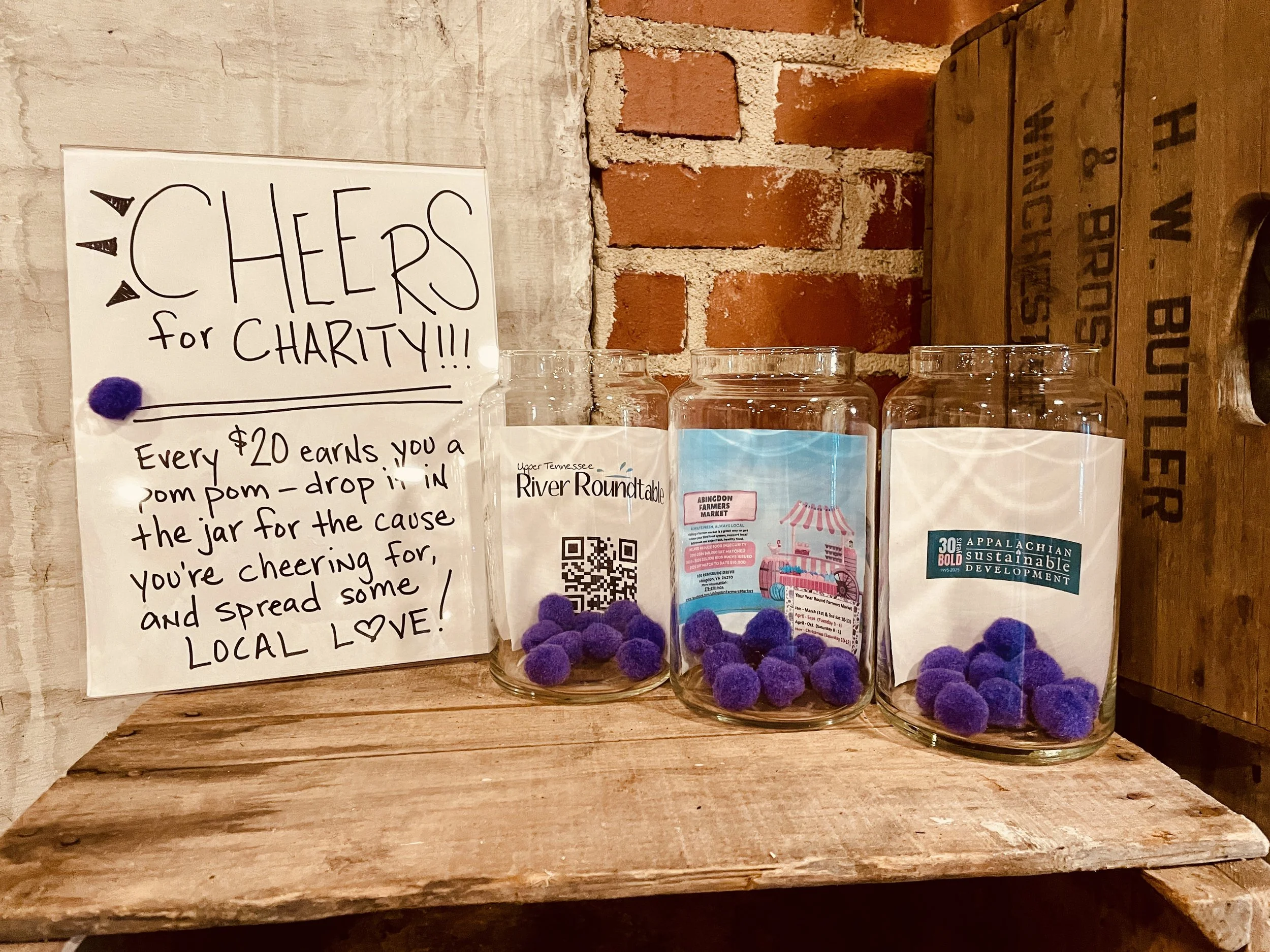 Make each pour count! Join us in supporting area organizations with our Cheers for Charity event. Order, vote and we will donate to the winning organization. It’s our way of giving back some of the big love SWVA has given to us.